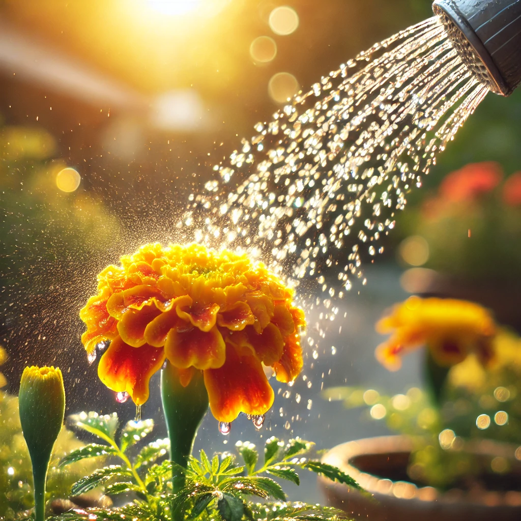 Watering marigolds requires balance. They do best when their soil is kept slightly moist but not overly wet. Water the plants deeply when the top inch of soil feels dry, but avoid watering directly onto the flowers and leaves to prevent mold and mildew. Mulching around the base can help retain moisture and minimize weeds.